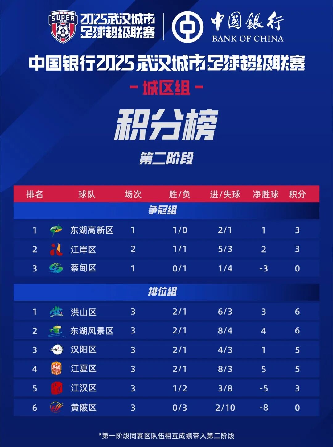 【越乔】从 武汉城市足球超级联赛获悉, 城区组 第二阶段 积分榜出炉,东湖高新区、江岸区、蔡甸区为争冠组。 赛前曾有网友留言牛道配资,“打赢了就是市中心”。