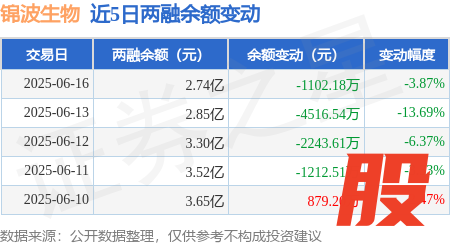 本站消息,6月16日易多投资,锦波生物(832982)融资买入1693.72万元,融资偿还2795.9万元,融资净卖出1102.18万元,融资余额2.74亿元,近20个交易日中有12个交易日出现融资净买入。